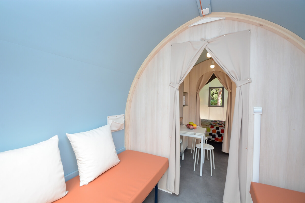 – 1 slaapkamer / woonkamer met 1 eenpersoonsbedden van 70 x 190 cm voor kinderen.