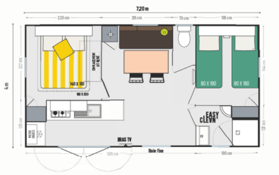 – 1 slaapkamer met 2 eenpersoonsbedden 80 x 190