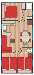 – Eethoek met extra slaapbank van 130 cm. 7e persoon tegen meerprijs