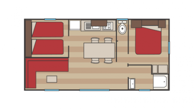– 1 slaapkamer met 2 eenpersoons bedden 80 x 190 cm.