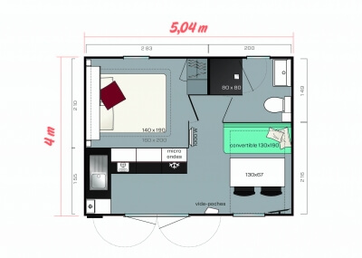 – 1 slaapkamer tweepersoons bed 160 x 200.